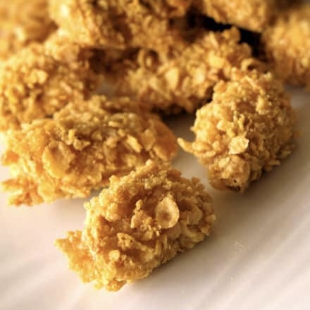 Des nuggets croustillants et sains, faits maison avec du blanc de poulet tendre, panés avec des corn-flakes non sucrés. Cuisson au four pour plus de légèreté.